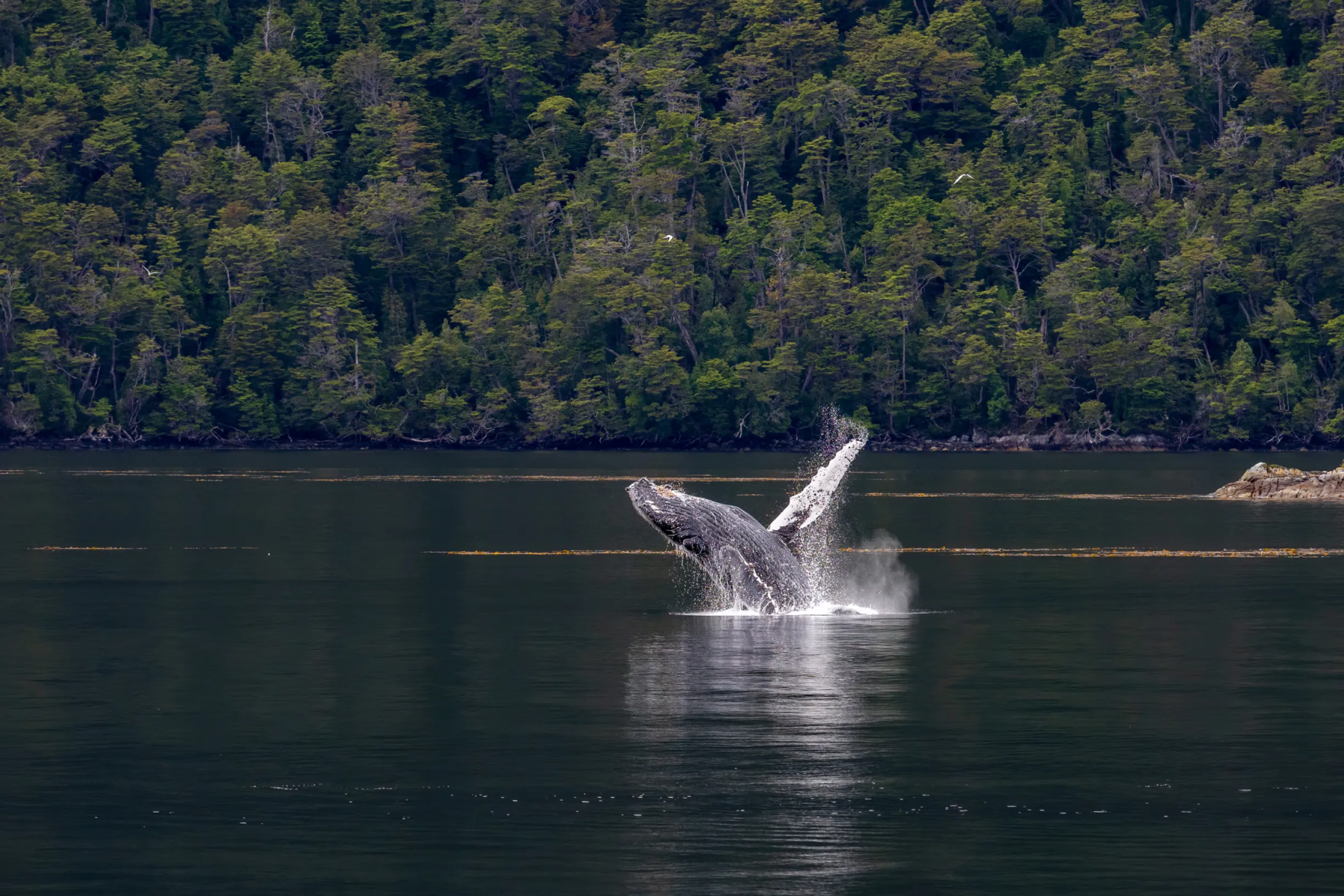 • Traslado al punto de navegación, donde habrá un desayuno a bordo mientras comienza la travesía por los canales australes para el avistamiento de fauna marina tales como lobos marinos, aves australes y ballenas jorobadas, las gigantes del mar. Estas nobles viajeras recorren miles de kilómetros cada año y durante su paso por Isla Santa Inés, nos regalan uno de los espectáculos más emocionantes de la naturaleza.
