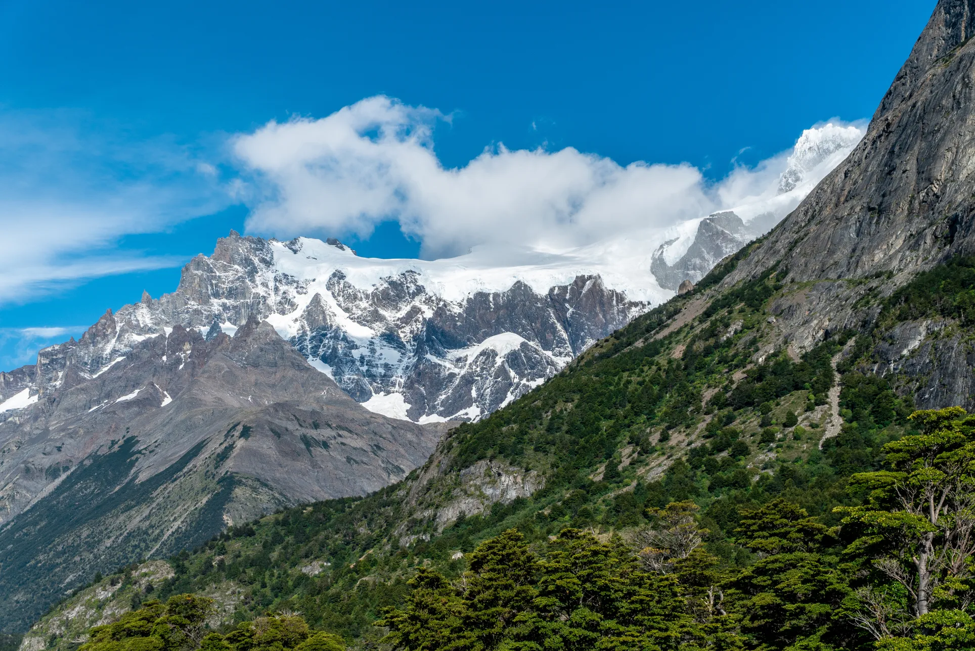 Bosques Sombríos y Aguas Cristalinas: imagina caminar por densos bosques de lengas, donde el aire fresco te envuelve y el sonido del agua cristalina del río Paine te acompaña. Aquí, puedes beber directamente de la fuente, disfrutando de la pureza de la Patagonia.