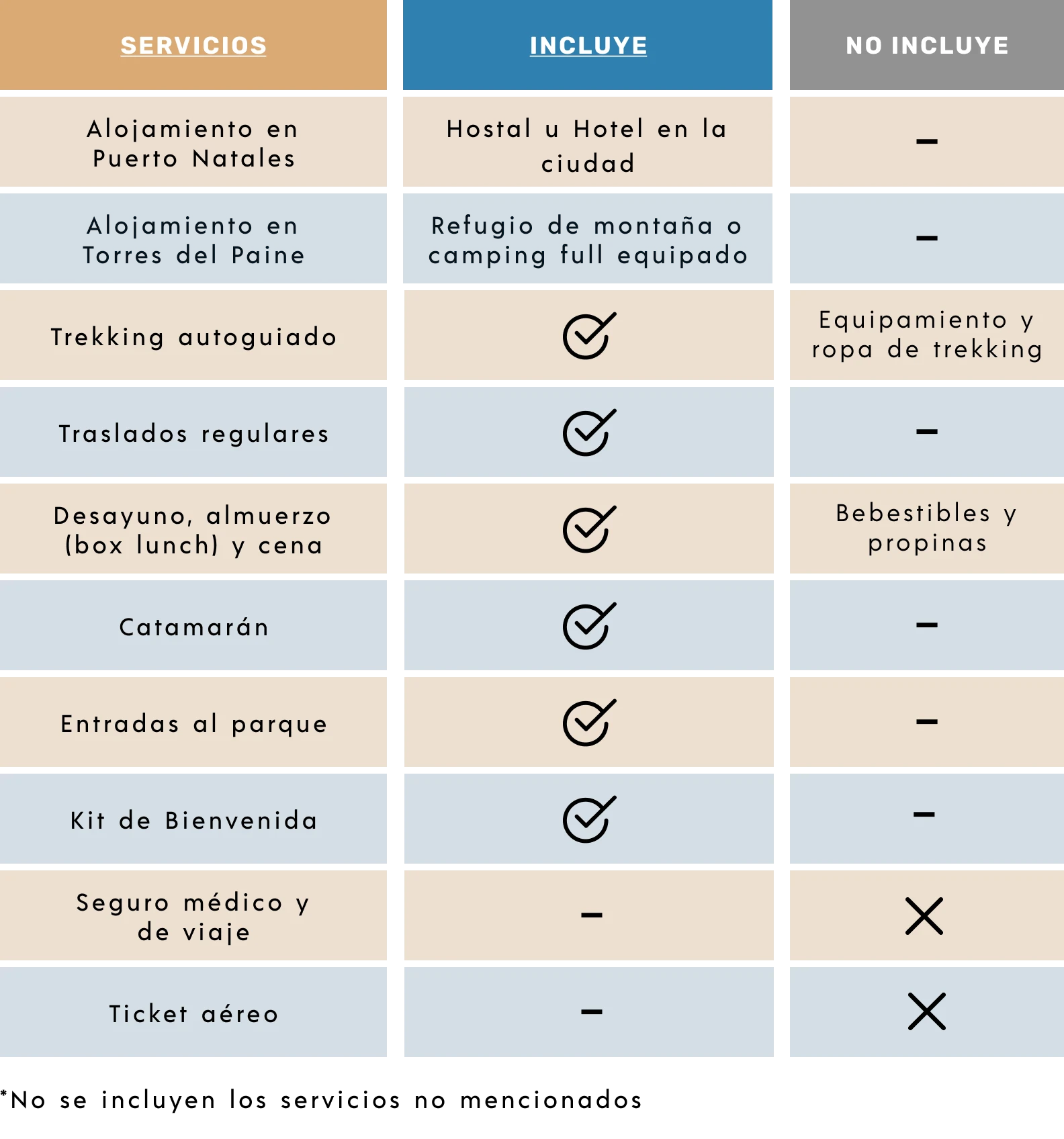 - Salida a las 14:00 horas a Parque Torres del Paine, en bus regular.